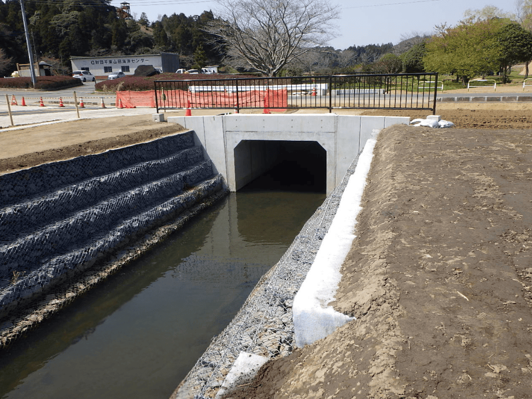 河川の改修や護岸工事を行い、地域の浸水被害を防ぎます。自然環境保護と防災に貢献する工事です。